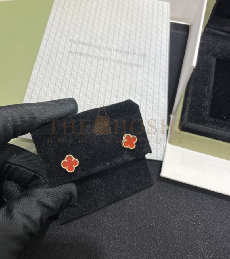 VAN CLEEF & ARPELS ALHAMBRA VINTAGE EARRINGS MINI 18K YELLOW GOLD/WHITE MOTHER-OF-PEARL MASTER QUALITY