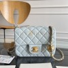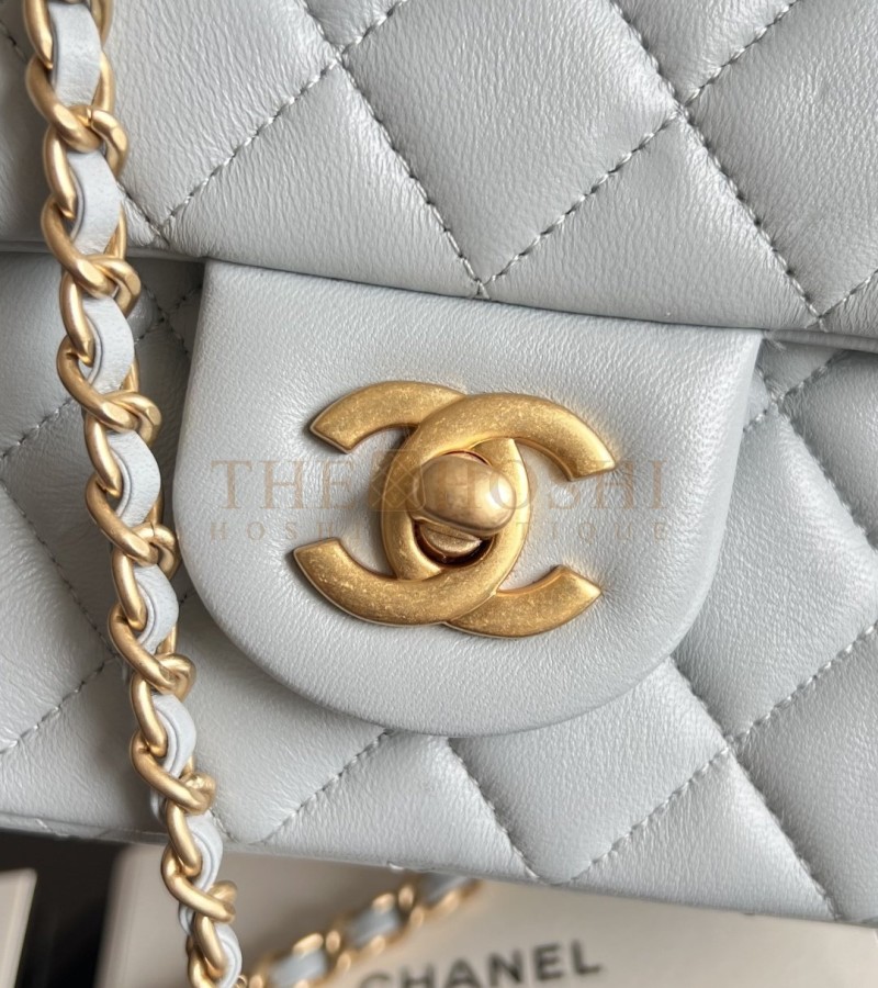 CHANEL CLASSIC FLAP SMALL BAG (AS1786) GLACIER BLUE GOATSKIN VINTAGE GOLD HARDWARE 13×18×7CM MASTER QUALITY