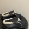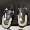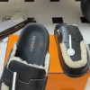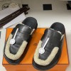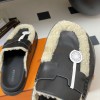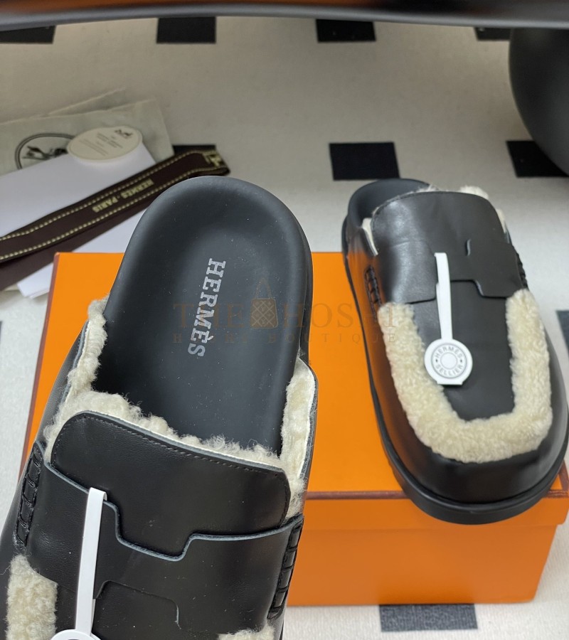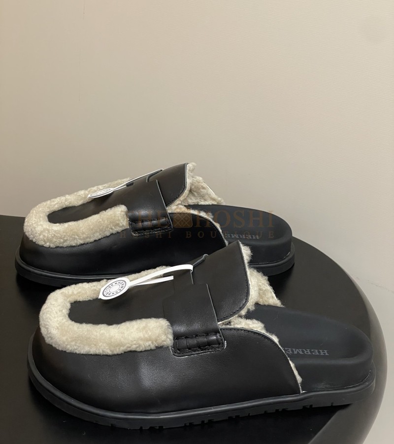 HERMES GO MULE SLIPPERS SANDALS CALFSKIN UPPER & WOOL INSOLE BLACK
