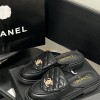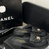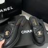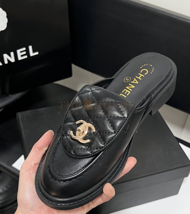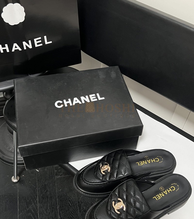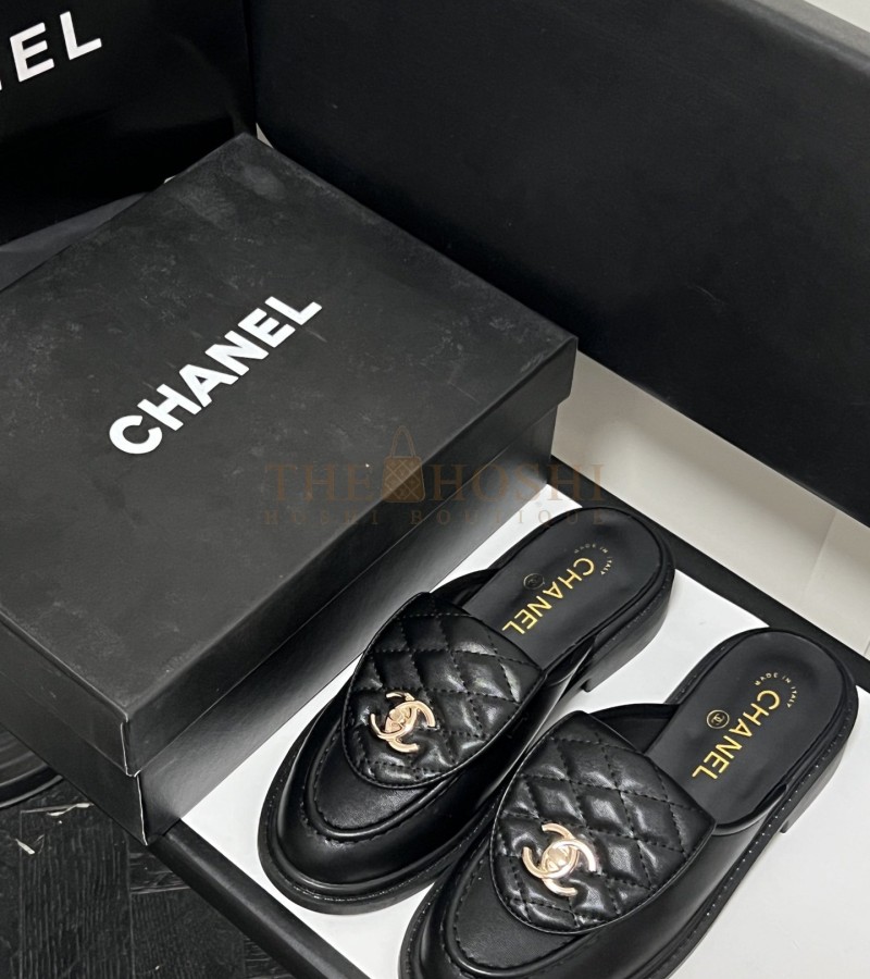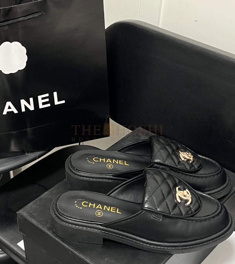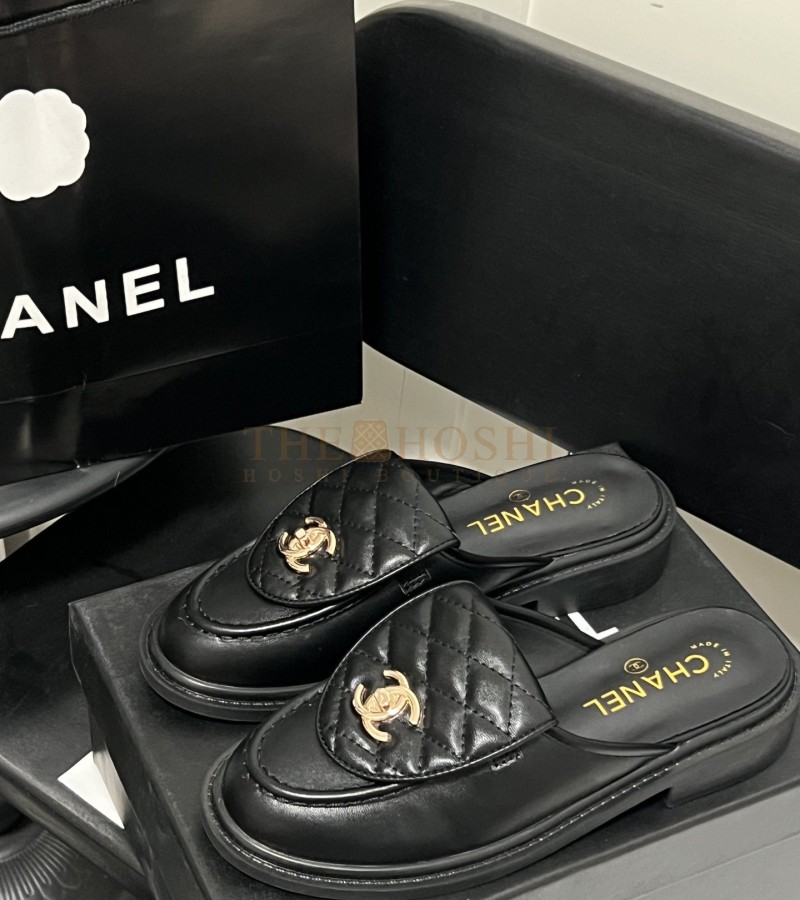 CHANEL QUILTED SLIP-ON BLACK LOAFER MULES LAMSKIN LEAHER