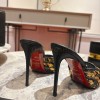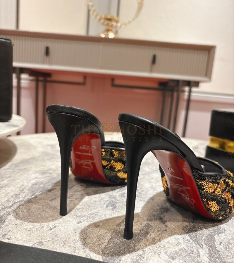 CHRISTIAN LOUBOUTIN CL POINTED-TOE HEELS GLOSSY CALFSKIN WITH LEOPARD SEQUINS BLACK SIZE WOMEN'S SIZE 34-42 HEEL 10CM MASTER QUALITY
