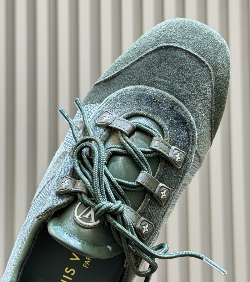 LOUIS VUITTON LV ARRIVAL LAMBSKIN BALLET FLATS WITH FLORAL SOLE GREEN MASTER QUALITY
